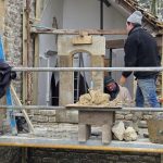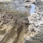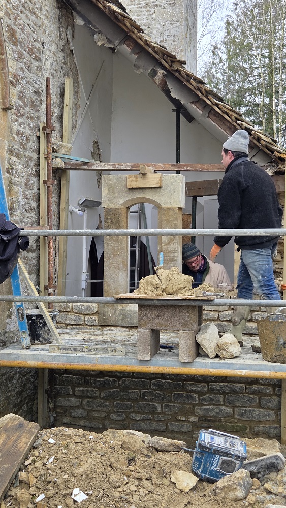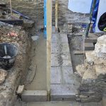 The trees have been dealt with in collaboration with our neighbours. Archaeological oversight of the excavations revealed bones of at least five bodies, which have been legally exhumed and will be reburied in the churchyard when the works are over. Buttons in one of the graves give us a rough date of 18th century for one of the burials, likely a high status young female.